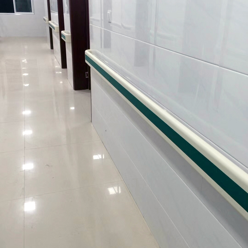 防撞扶手是由PVC面板与铝合金底衬加底座组合而成,它具有具有抗菌,防火,耐磨,护墙,防滑功效。用于医院,养老院等公共场所。帮忙病残体弱者支撑行走,还能起到保护墙体的作用。